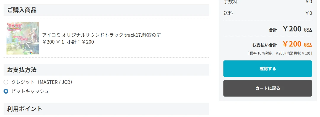 ご注文内容をご確認いただき、ご注文手続きを進めてください。BitCashのお支払ページへ移動します。