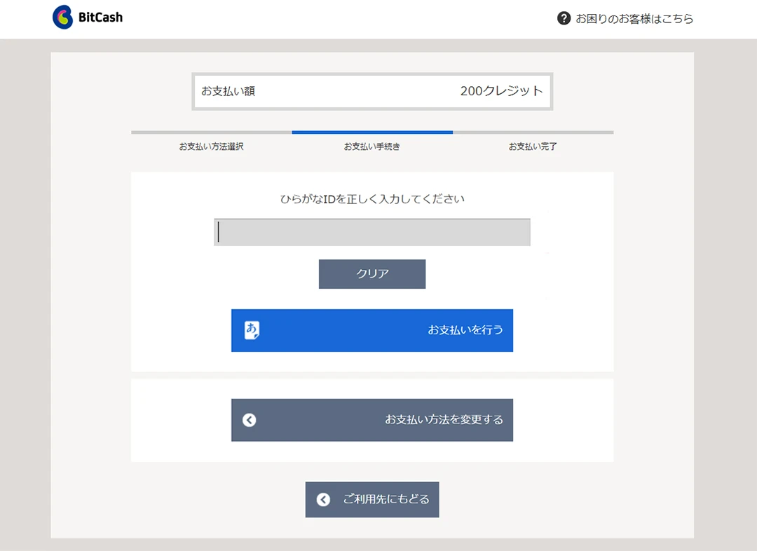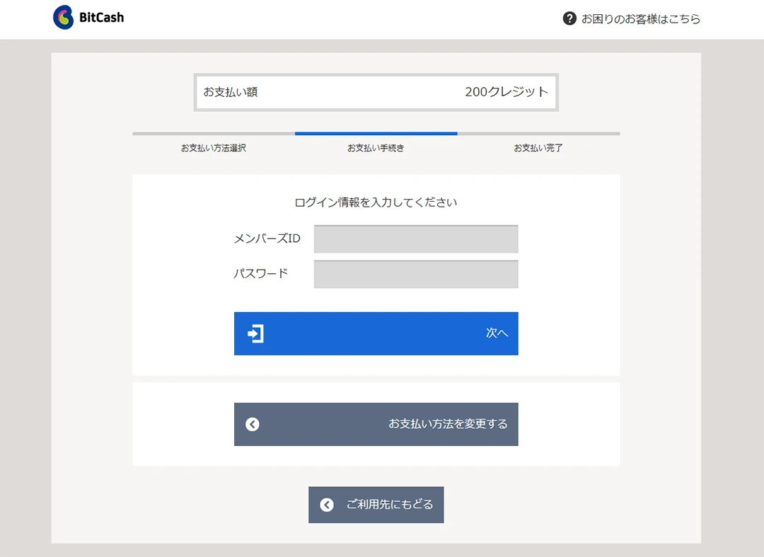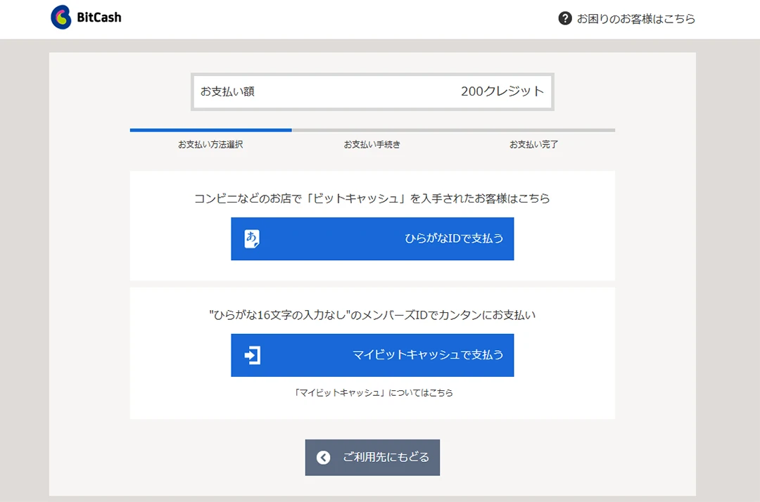 コンビニ等でご購入いただきましたBitCashカードをご利用の場合は、こちらを選択してください。