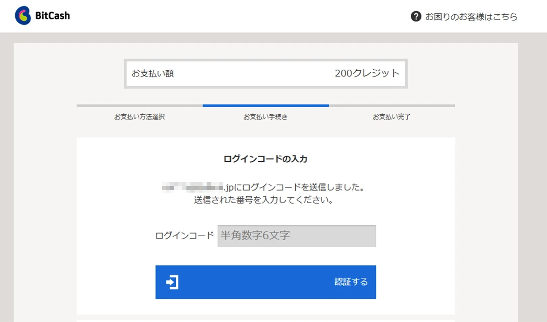 ビットキャッシュメンバーズで登録されたメールアドレスに「ログインコード」が送信されます。